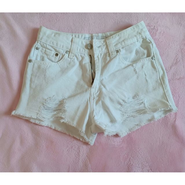 กางเกงยีนส์ ขาสั้น เอว25-26 สะโพก30-32 ลดราคา แซก เดรส ชุดเดรสสั้น นำเข้า #genedenim circe-in white
