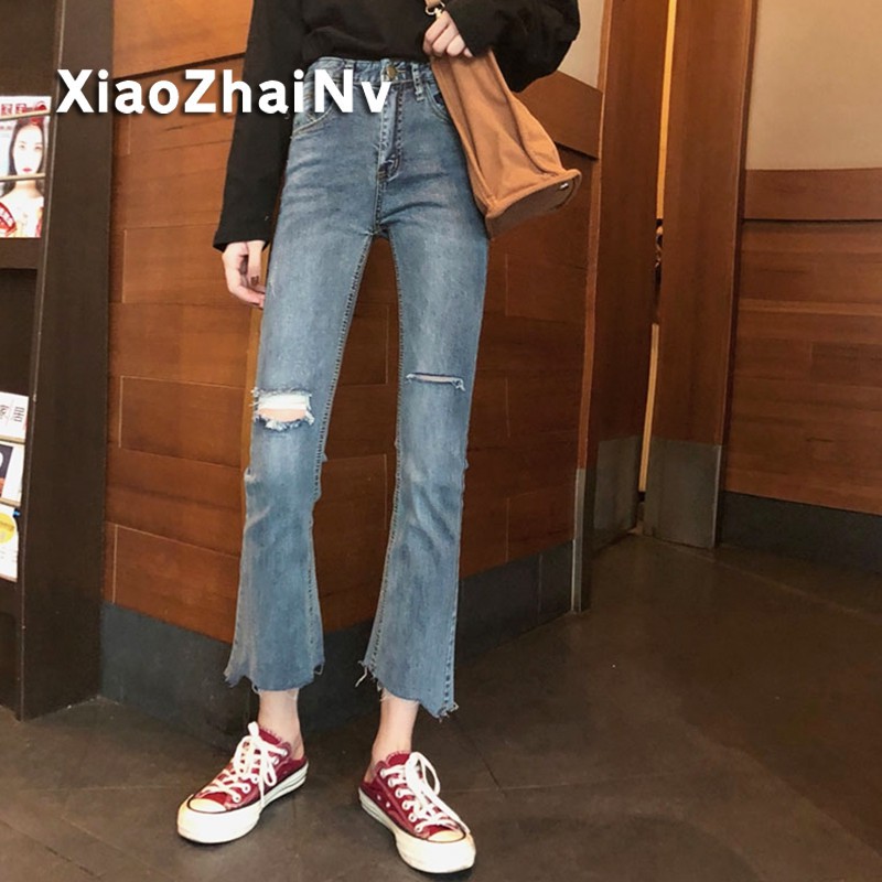 กางเกงยีนส์ทรงสลิม สไตล์เกาหลีสำหรับผู้หญิง