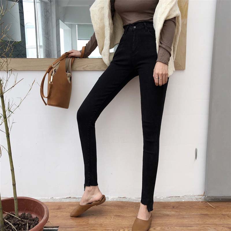 กางเกงยีนส์ เอวสูง สไตล์เกาหลีสำหรับผู้หญิง