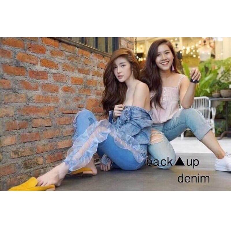| เอวสูงแต่ง สั่งได้เลยจ้า 9563#กางเกงยีนส์ ด้านข้างซีทรูระบายสวยหวานปนเปรี้ยวแซ่บๆ มาเติมครบไซต์ล่ะนะ XL-XXL size-S M-L |