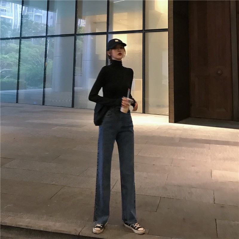 | กางเกงยีนส์เอวสูงสไตล์เกาหลีสำหรับผู้หญิง |