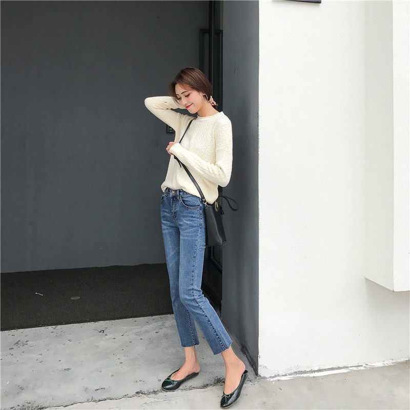 | ที่ได้คุณภาพตรงเก้า ผ้าดีมากใส่สบายสไตล์วินเทจหลุ่ยปลาย กางเกงยีนส์ Joker เวอร์ชั่นเกาหลีใหม่ ▲▼ |
