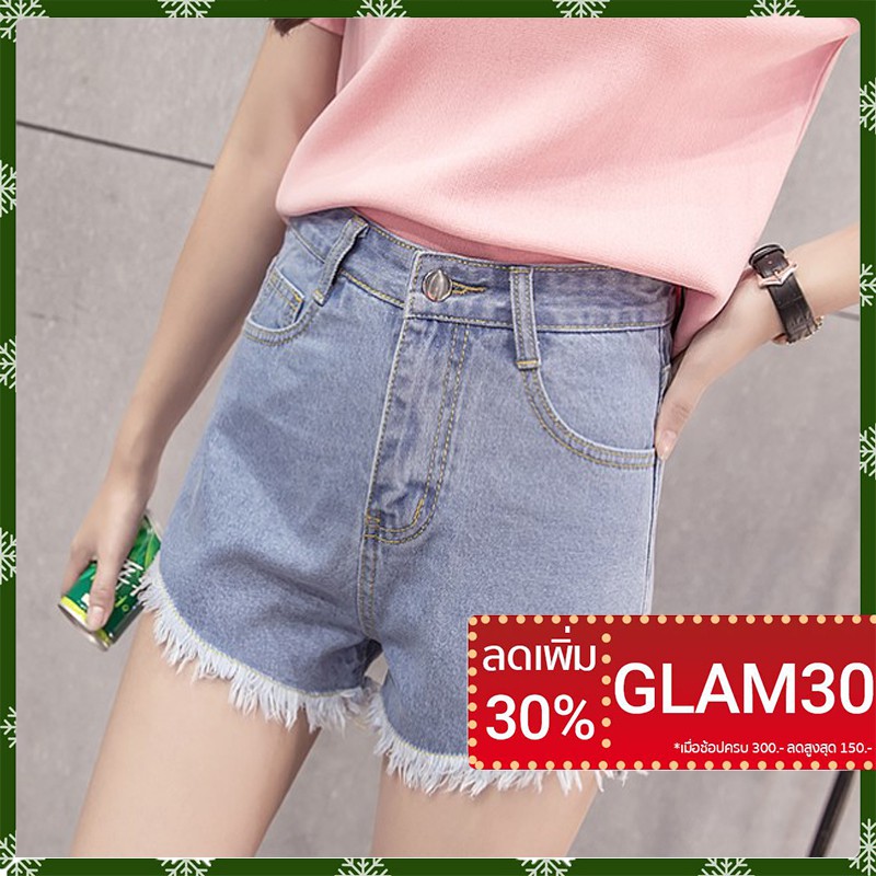 | GLAM30 **โค้ด Xi ลด Home 30%**กางเกงยีนส์ขาสั้นเอวสูง |