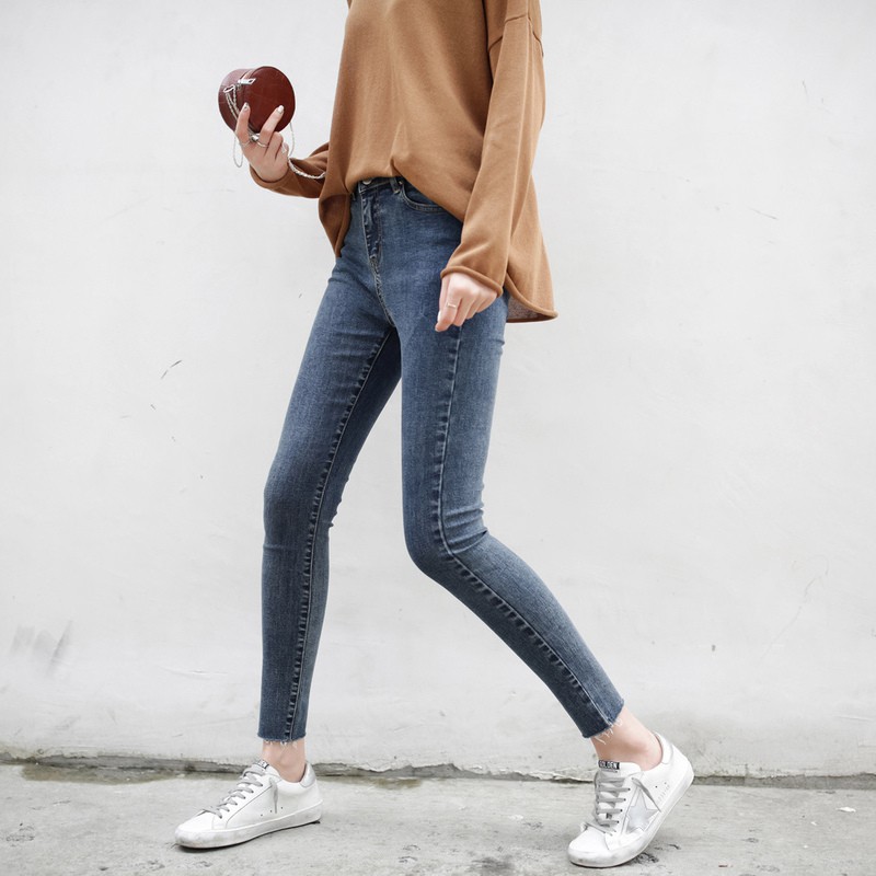 เกาหลีของ เอวสูงผมดิบ ขาแน่นกางเกงยีนส์หญิงฤดูใบไม้ร่ แซก JHXC