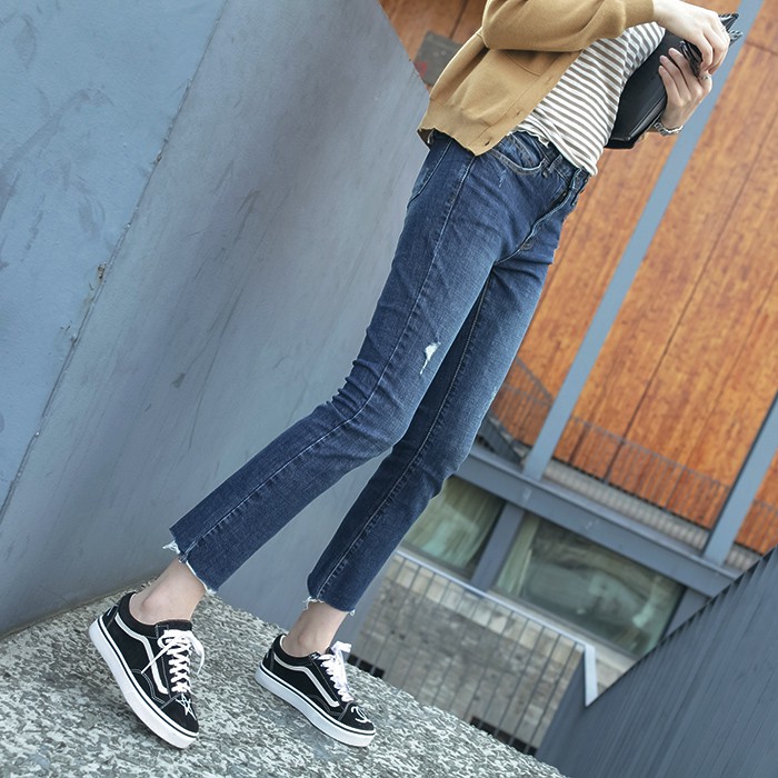 | เกาหลียืดหยุ่นสูง JHXC เอวหลุมดิบผมตรงกางเกงยีนส์หญิงฤดูใบไม้ |