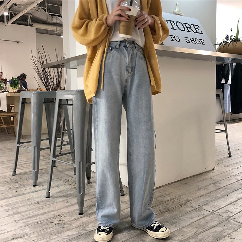 | กางเกงยีนส์ทรงตรงสไตล์เกาหลีสำหรับผู้หญิง |