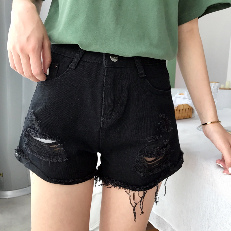 | สไตล์เกาหลี ขาม้วนขอบหลุมกว้าง วินเทจ กางเกงยีนส์ ขาสั้น เอวสูง สต็อคพร้อม |