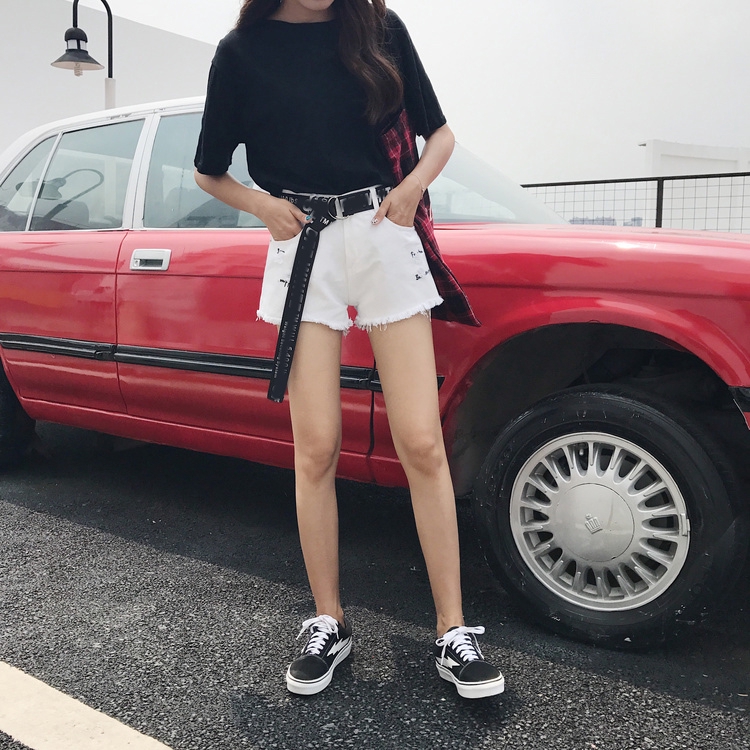 | ผ่อนคลาย พู่ที่ขอบหลุมใหม่เกาหลีหน้าร้อนสบายๆ กางเกงยีนส์ สต็อคพร้อม ขาสั้น สไตล์เกาหลี |