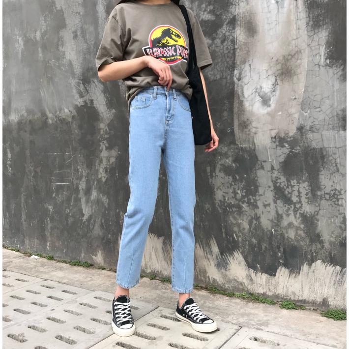 | กางเกงยีนส์เร้าอารมณ์ย้อนยุคตรงใหม่เอวหญิงใหม่หลวมนักเร JHXC |