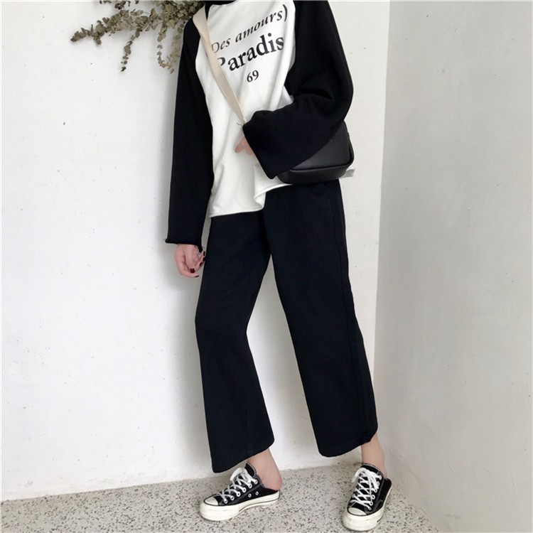 | กางเกงยีนส์ทรงตรงสไตล์เกาหลีสำหรับผู้หญิง |