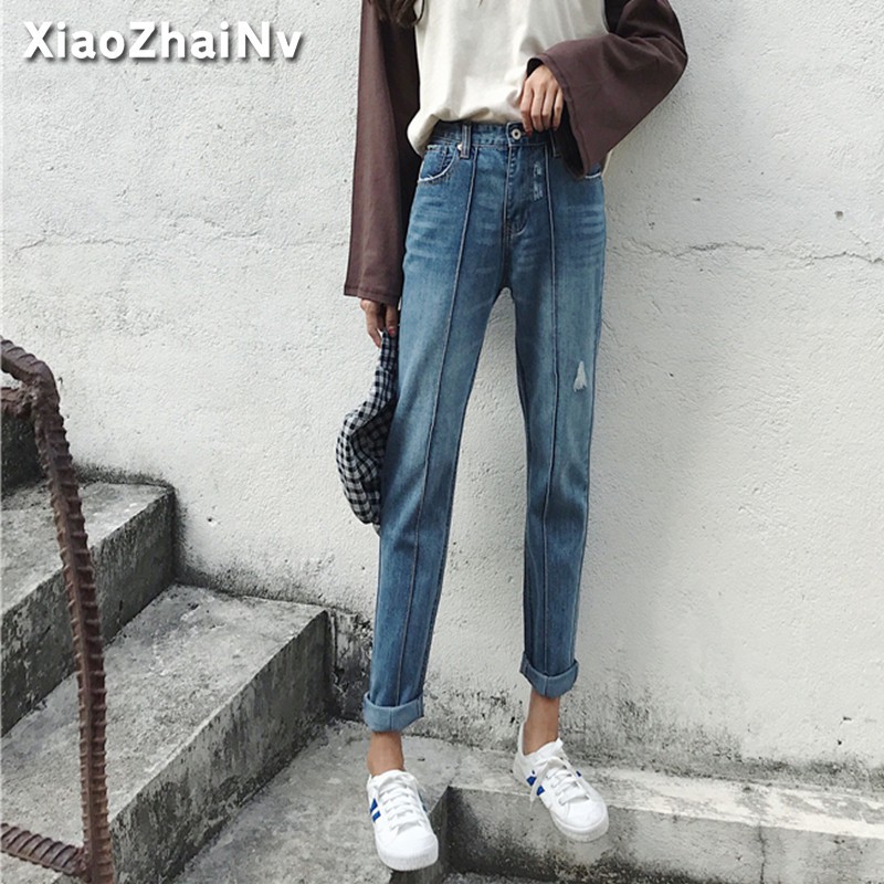 | 💋💋กางเกงยีนส์ แฟชั่นบุคลิกภาพ สไตล์เกาหลี กางเกงยีนส์ขายาวทรงตรง 【PinkSun】 |