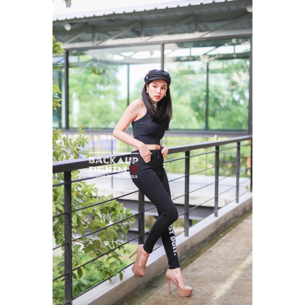 สาวอวบ กางเกงยีนส์เดฟ ขายาว ผ้ายืด สีดำสนิท แต่งหน้า ขา ชุด SMLXL/