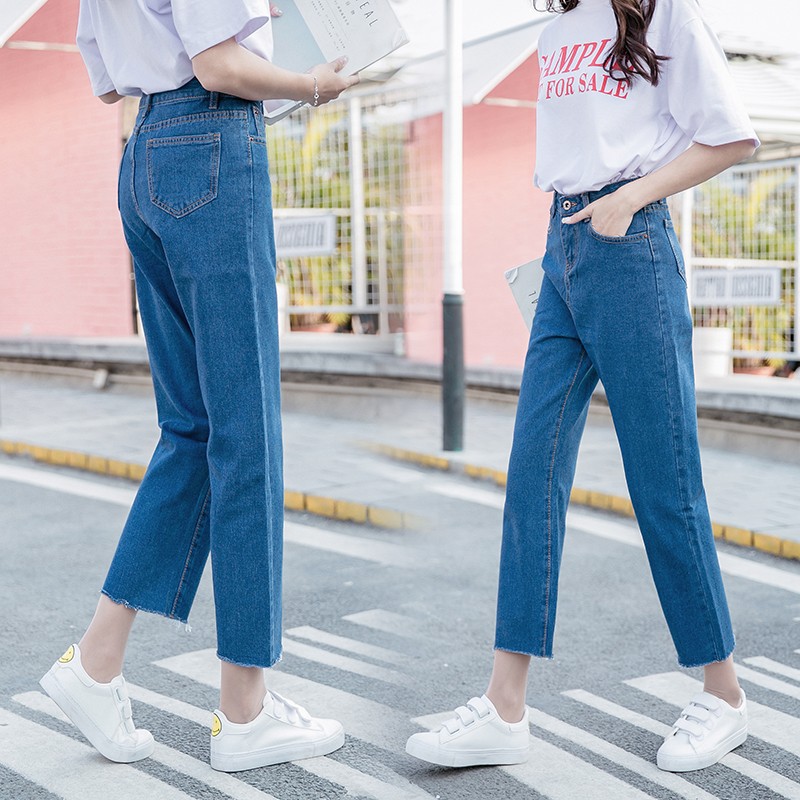 | เก้าส่วน Straight สไตล์เกาหลี dress ขายาวสำหรับสตรี กางเกงยีนส์ ทรง |