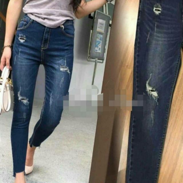| กางเกงยีนส์สกินนี่🌹สีเข้มสวยมากกแต่งขาดขา🍎🍉 |