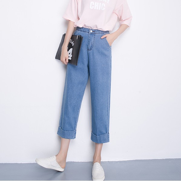 | กางเกงยีนส์เอวสูงทรงหลวมสไตล์เกาหลี |