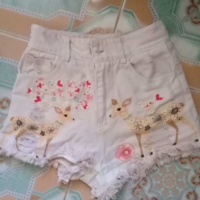 | เอว25-26 circe กางเกงยีนส์ขาสั้น in #genedenimรุ่น สะโพก30-32 white |