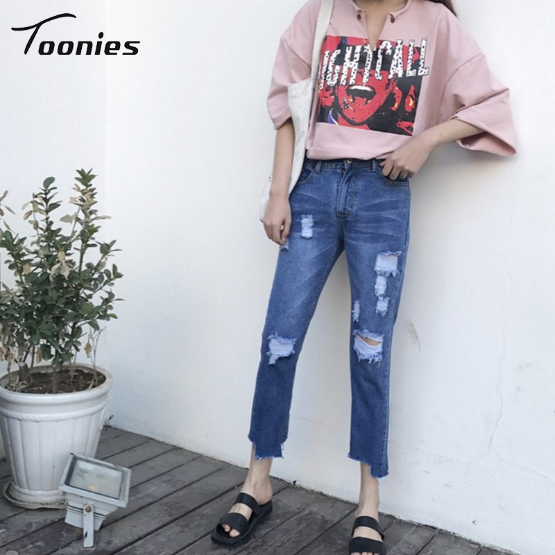 | กางเกงยีนส์ทรงหลวมเอวสูงสไตล์เกาหลีสำหรับผู้หญิง |