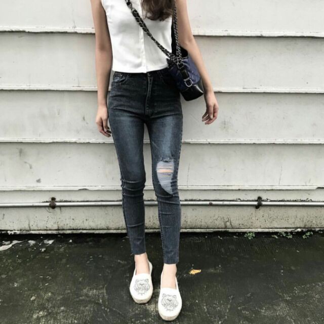 | 👖กางเกงยีนส์✌️กางเกงยีนส์ขายาว🍎ทรงสกินนี่ไม่ขาด💕💕(No.6711.2) |