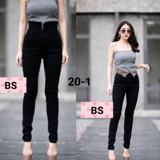 Jeans-Style Korea กางเกงยีนส์แฟชั่น ขายาว สีดำ เอวสูง ทรงเดป ผ้ายืดค่ะ แต่งขอบลายเสือ