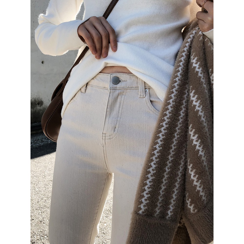 เอวสูงกางเกงยีนส์สี ขาวหญิงตรงหลวมใหม่เกาหลีของป่าเก ชุด JHXC