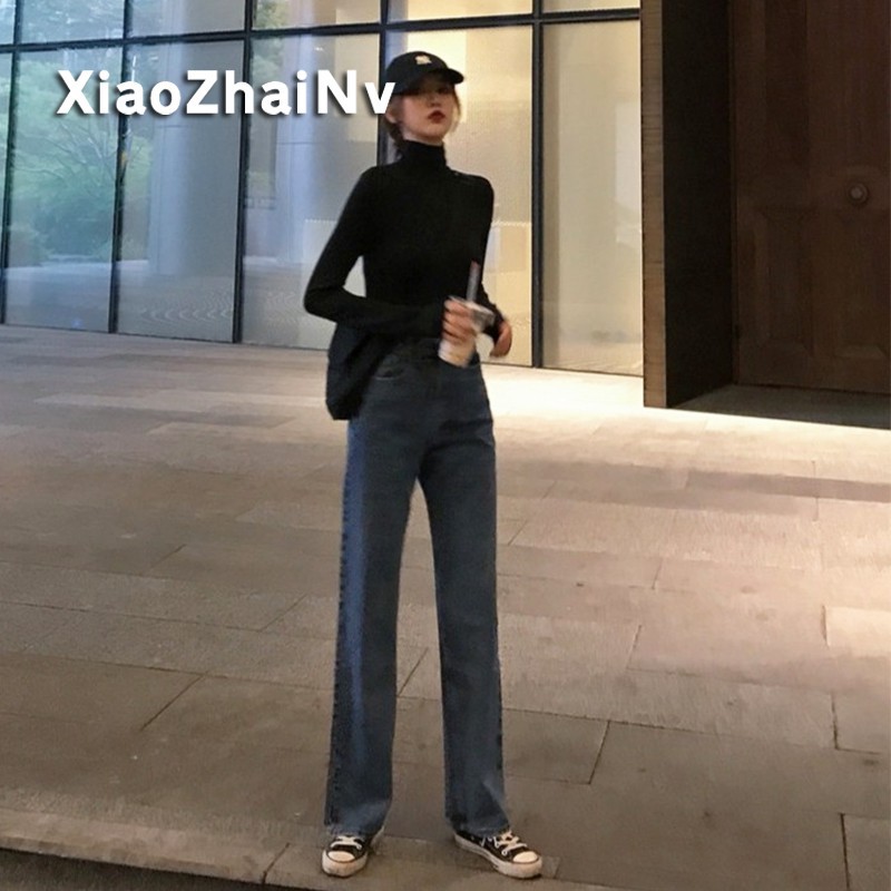 กางเกงยีนส์ ขากว้าง เอวสูง สไตล์เกาหลี PinkSun