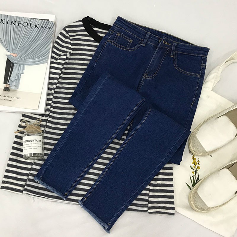 | กางเกงยีนส์ขายาวแบบเข้ารูปแฟชั่นสำหรับผู้หญิง |