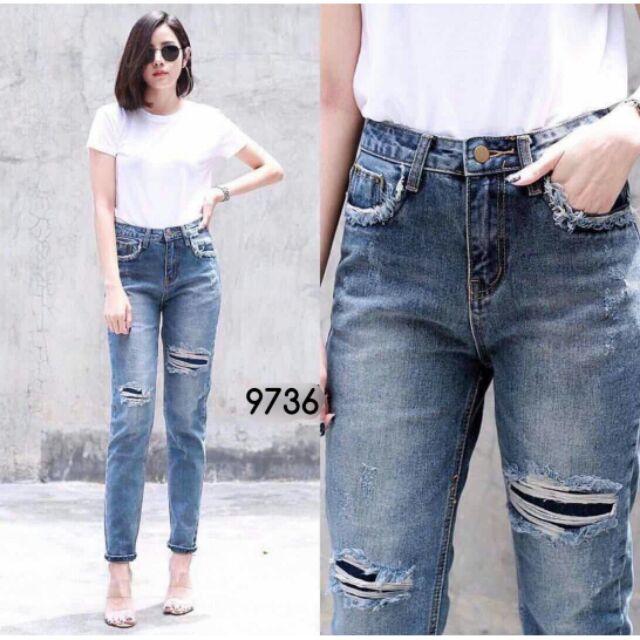 กางเกงยีนส์งานนำเข้าเกากลีทรงบอย ขาดเท่ๆ ทรงสวย