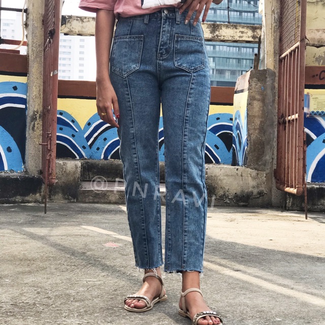 | 2018 รุ่นใหม่ของเกาหลีกึ่งยืดหยุ่นเอวสูงสีทึบเป กางเกงยีนส์ลำลองฤดูใบไม้ร่วงหญิง |