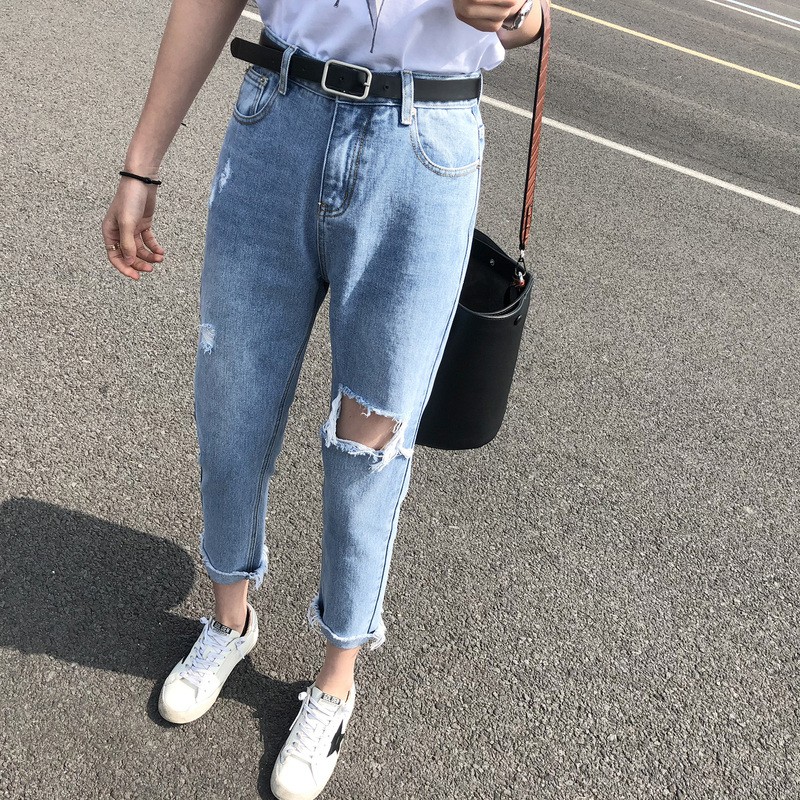 | เอวสูงหลวมเก้ กางเกงยีนส์ เก๋เน่าเสียหญิงช่วงฤดูร้อนใหม่ JHXC |