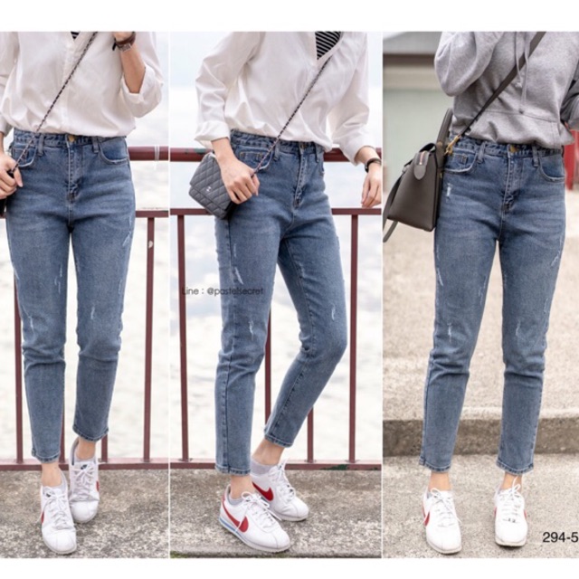 | กางเกงยีนส์ขายาวแฟชั่นสำหรับสตรีสไตล์เกาหลี |