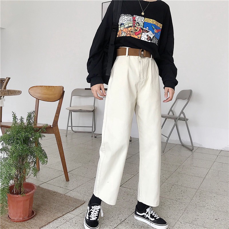 | กางเกงยีนส์ทรงหลวมเอวสูง 【PinkSun】 |
