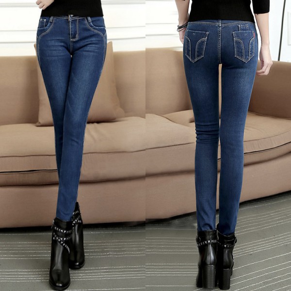 | 11725X มีซับกำมะหยี่ หนากันหนาว ติดลบได้ตัวเดียวเอาอยู่ กางเกงยีนส์ทรงสลิม ใส่ สีน้ำเงิน |