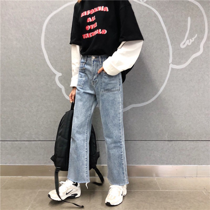 | กางเกงยีนส์ขายาวทรงหลวมสไตล์เกาหลีสำหรับผู้หญิง |