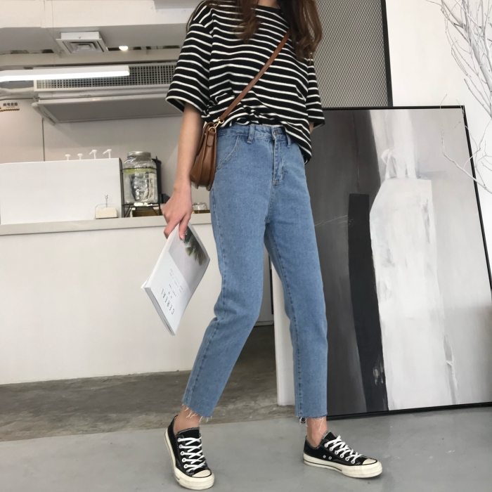 กางเกงยีนส์ ผ้าดีมากใส่สบาย สไตล์วินเทจหลุ่ยปลาย ราคา! เวอร์ชั่นเกาหลีที่ตรงส่วนเก้าป่าใหม่ 2018
