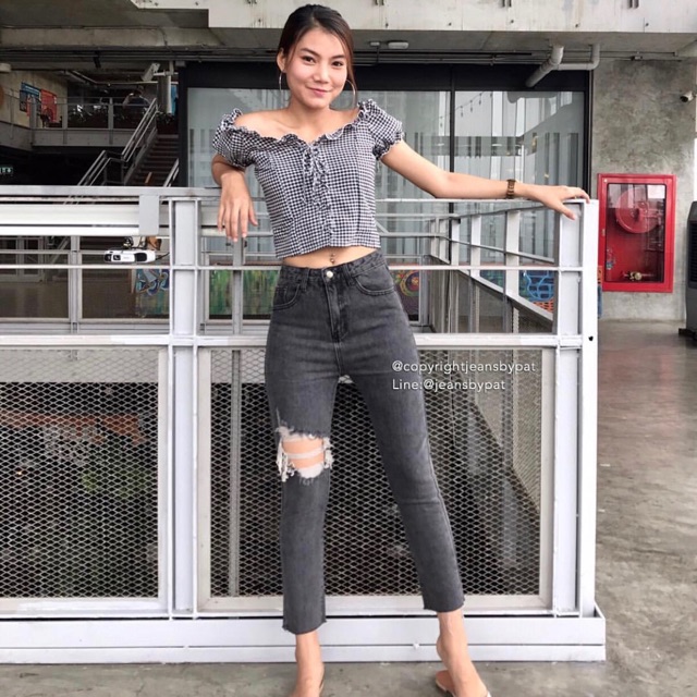 | Slimmi กางเกงยีนส์เอวสูงสไตล์เกาหลี |
