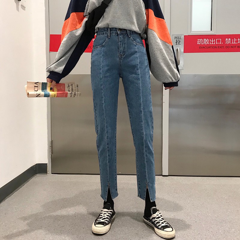 กางเกงยีนส์ เอวสูงทรงหลวมสำหรับผู้หญิง ชุดเดรสยาว เดรส สินค้าขายดี ถูก ราคาถูก