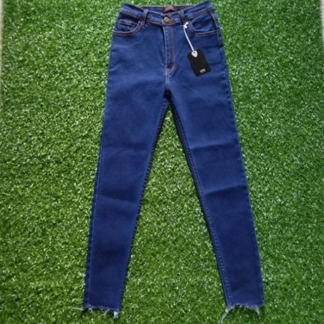 กางเกงยีนส์ยืดทรงสกินนี่ เอวสูง