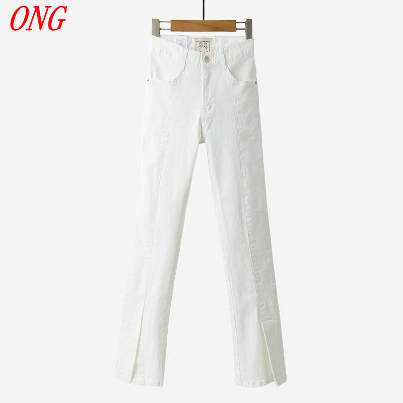 ONG กางเกงยีนส์สี ขาวกางเกงยีนส์สี ขาวฤดูใบไม้ร่วงและฤดูหนาวผู้หญิง 2018 ขากว้างให