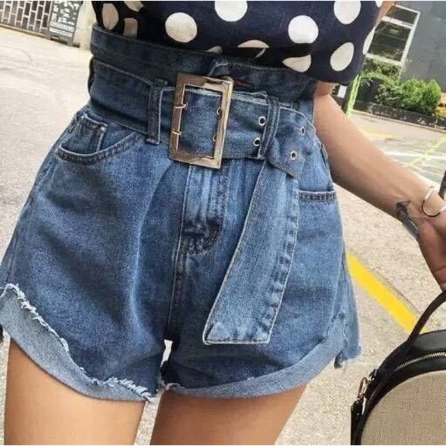 กางเกงยีนย์ ขาสั้น พร้อมเข็มขัด