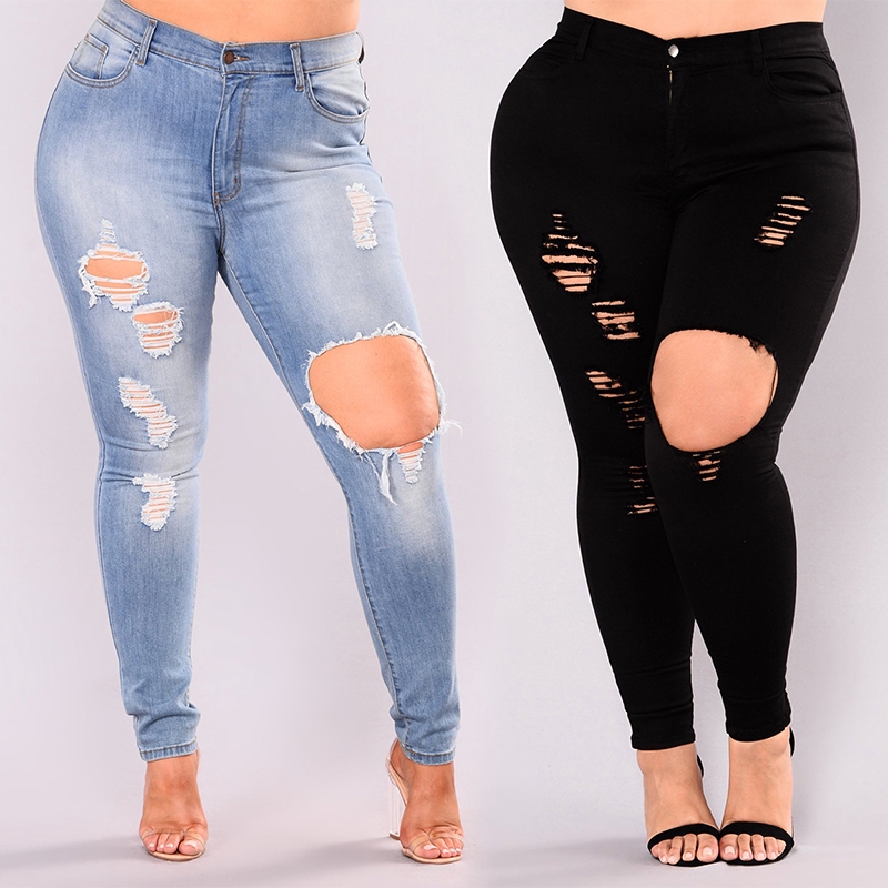 กางเกงยีนส์สกินนี่ เอวสูงแฟชั่นสตรี