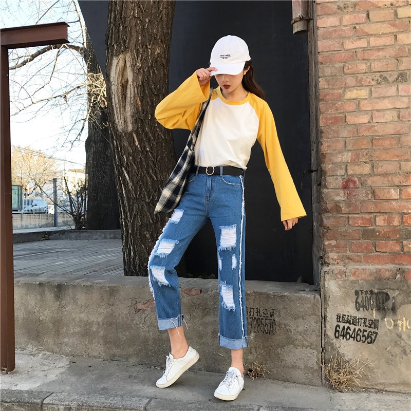 | กางเกงยีนส์เอวสูงสไตล์เกาหลีสำหรับผู้หญิง |