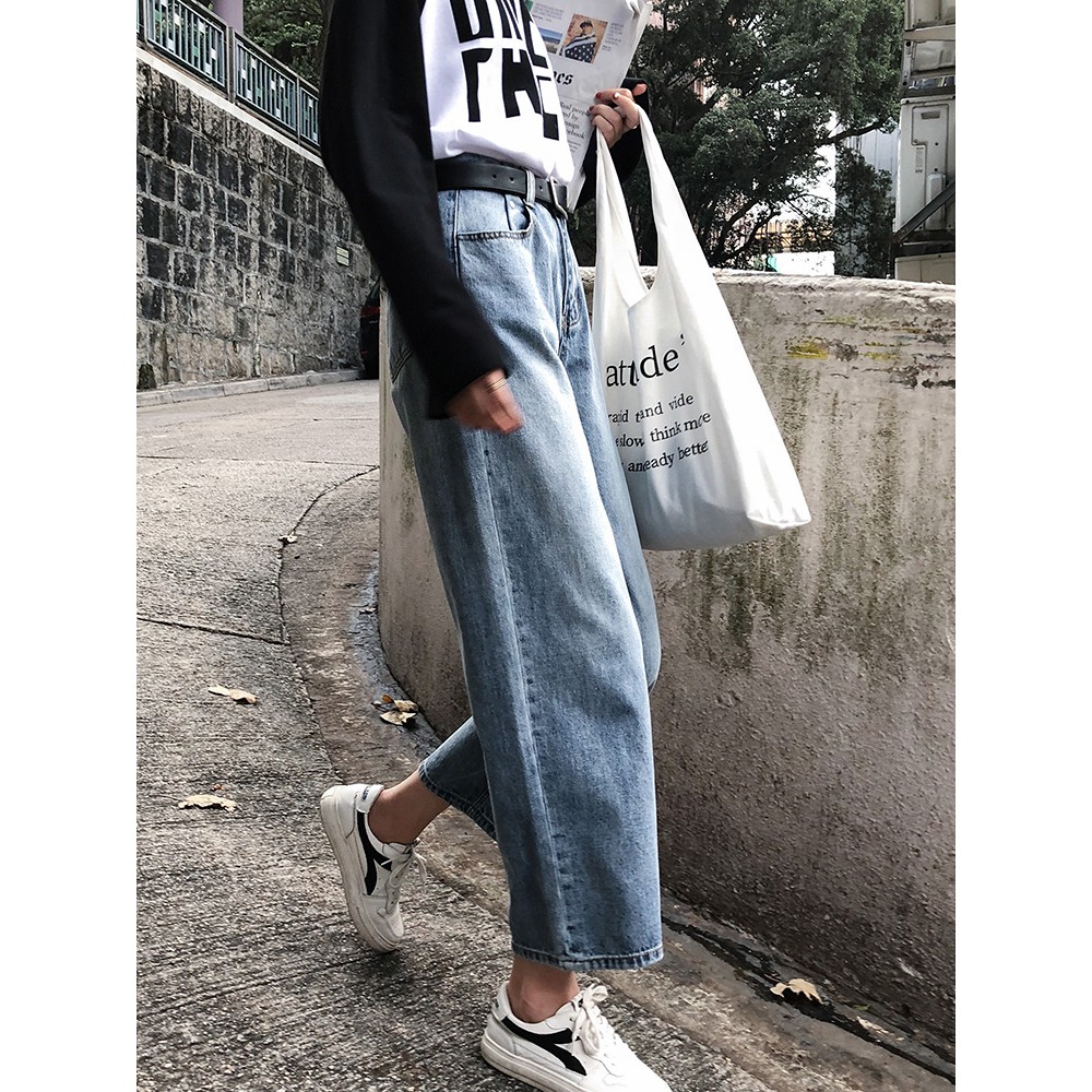 | กางเกงยีนส์เร้าอารมณ์ย้อนยุคตรงใหม่เอวหญิงใหม่หลวมนักเร JHXC |