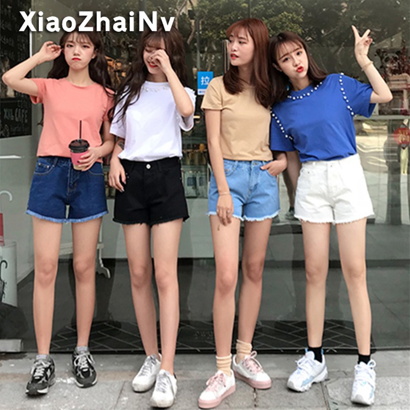 | PinkSun ราคาถูก กางเกงยีนส์ บางเฉียบ ขาสั้น สไตล์เกาหลี ชุด ราตรีสั้น ฮาวาย |