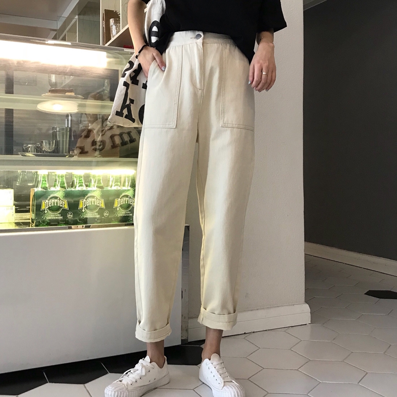 Sirgirl #JE5637-New Korean-Fashion Semi-elastic-Waist Casual-Womenjeans