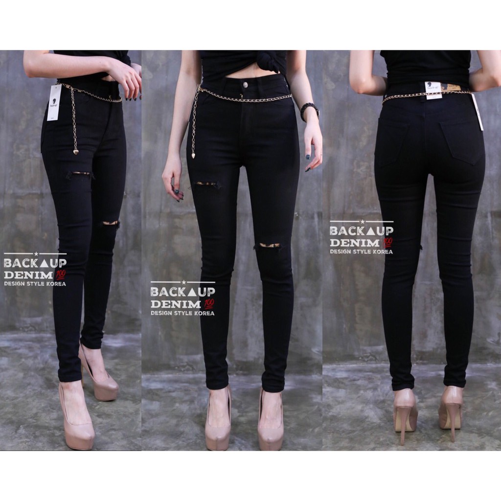 | ผ้ายืด *กางเกงยีนส์เดฟขายาว SMLXL/สาวอวบ สีดำสนิท 👖 แต่งหน้าขา |