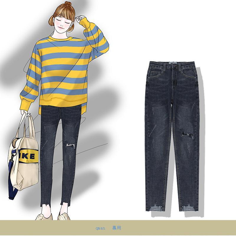 จุดใหม่ในรายการ ฤดูใบไม้ร่วงและฤดูหนาวใหม่เกาหลี เอวป่าผอมกางเกงยีนส์หลุมฟุตถุงน่องหญิง 2018
