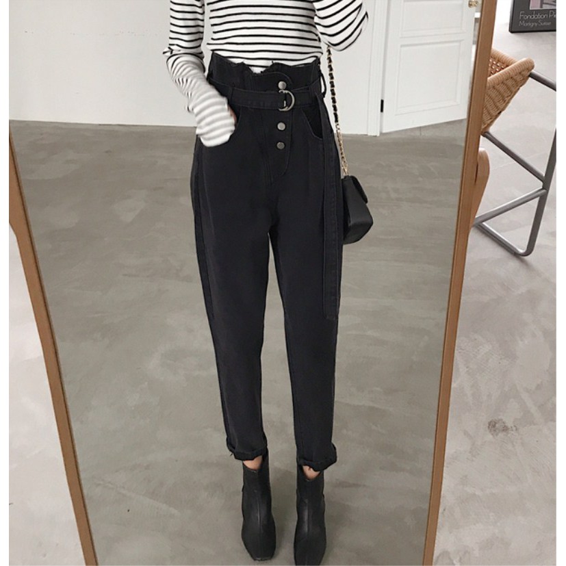 | กางเกงยีนส์เอวสูงสไตล์เกาหลีสำหรับผู้หญิง |