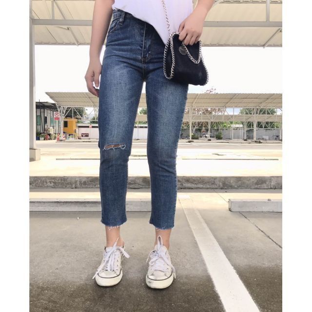 กางเกงยีนส์ สไตล์เกาหลี ขาดเส้นNo.6806