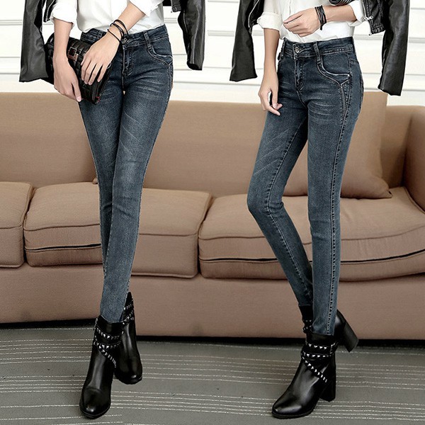 | ใส่ หนากันหนาว มีซับกำมะหยี่ 11725X สีเทา กางเกงยีนส์ทรงสลิม ติดลบได้ตัวเดียวเอาอยู่ |