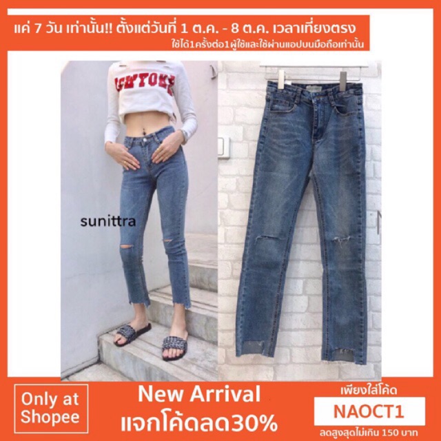 | ลด100บาท) 💥Best Seller💥 (ลูกค้าใหม่ใช้โค้ด กางเกงยีนส์สีดำขาดเข่า NEWDIS |